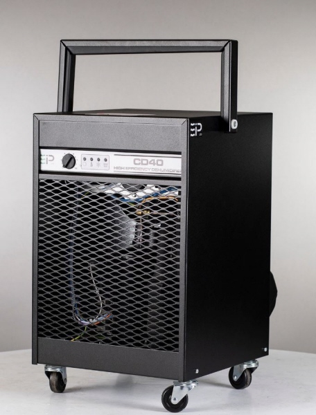 Similar to the Ebac CD35 but with a higher extraction rate of 15L/day and with a greater effective volume, the New CD40 is ideal for Basements, cellars, small archive areas, storerooms, drying shampooed carpets, damp areas due to leaks & flooding etc